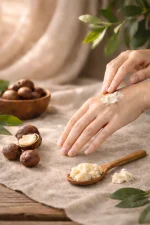 Riche en acides gras essentiels et en vitamine E, le karité brut accélère la régénération cellulaire. Il apaise les rougeurs, calme les irritations, réduit les plaques d’eczéma et répare les zones sèches et craquelées — coudes, talons, lèvres, mains.